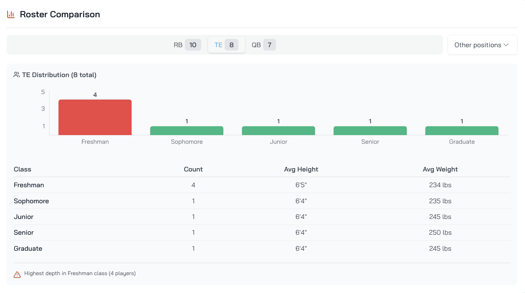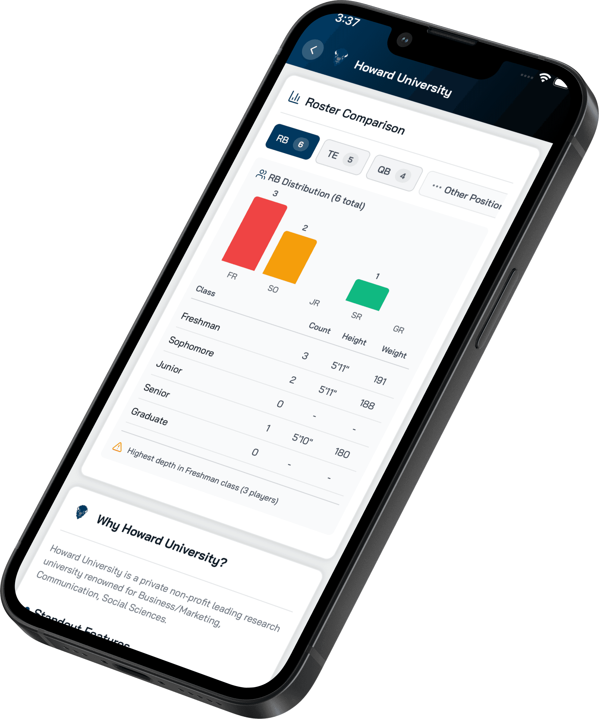Get detailed roster insights for 900+ college football and flag football programs, helping you find the programs that you can make an impact on easier than ever before.